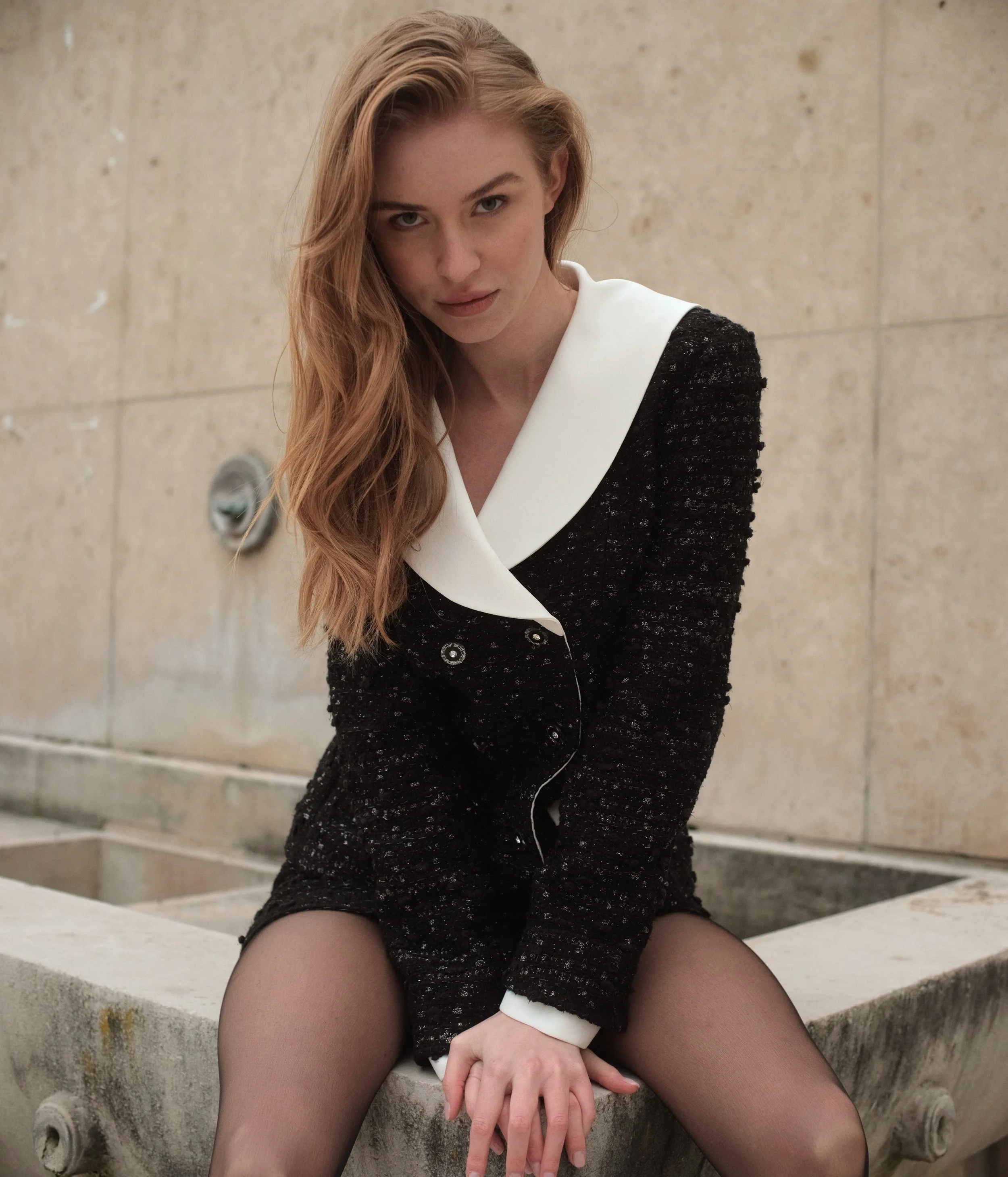 Black tweed set with large collar